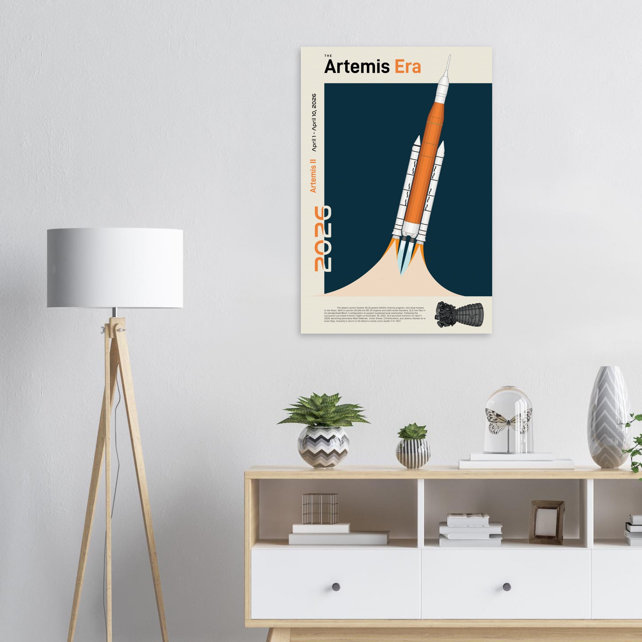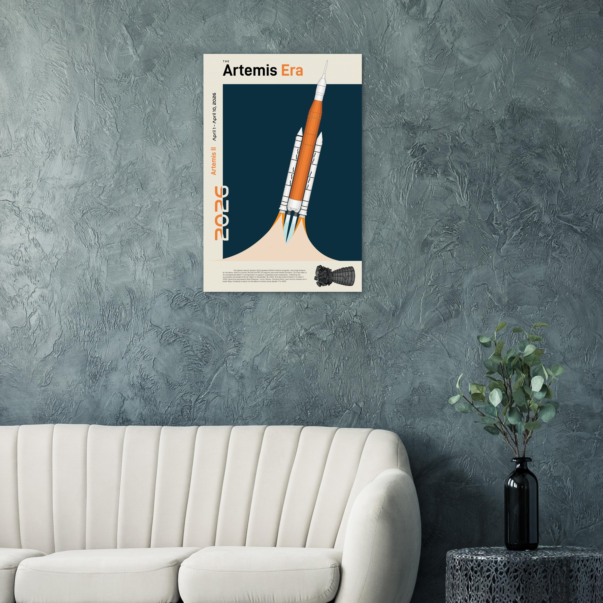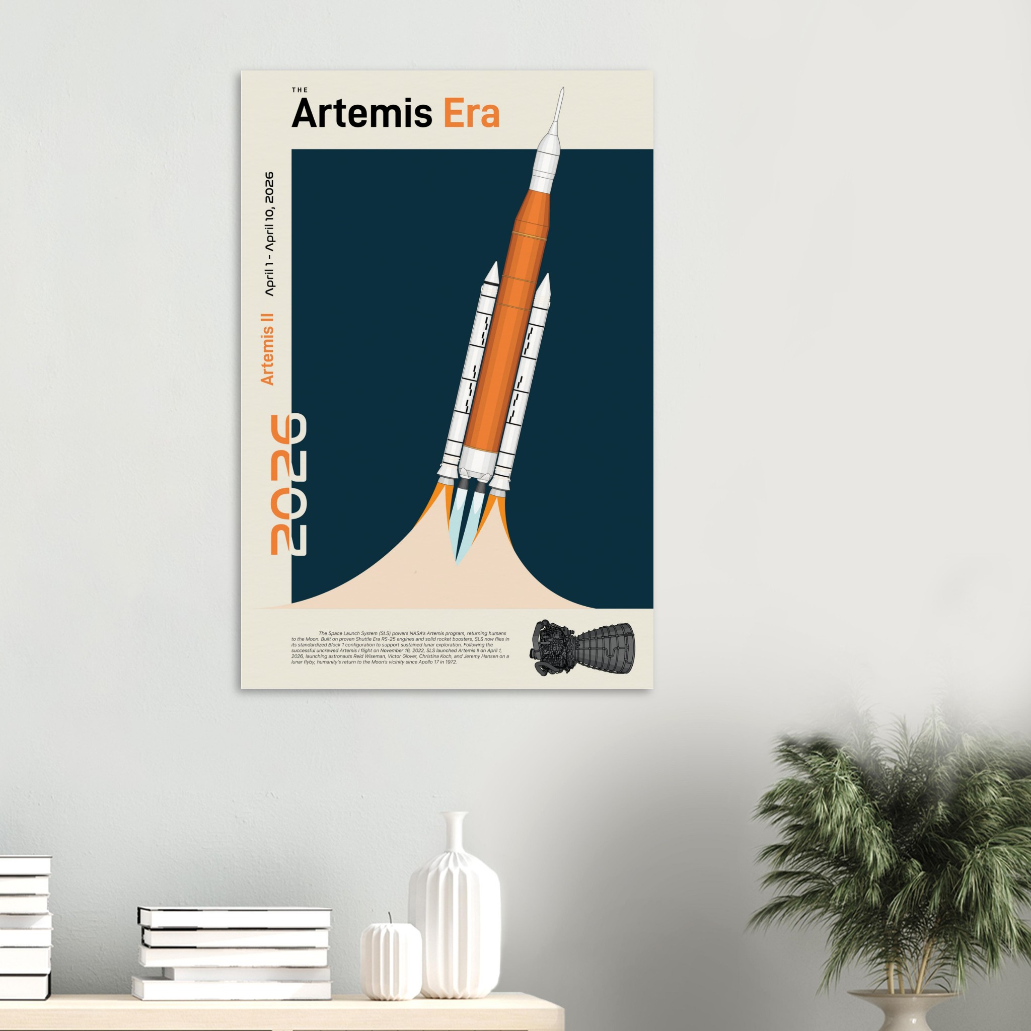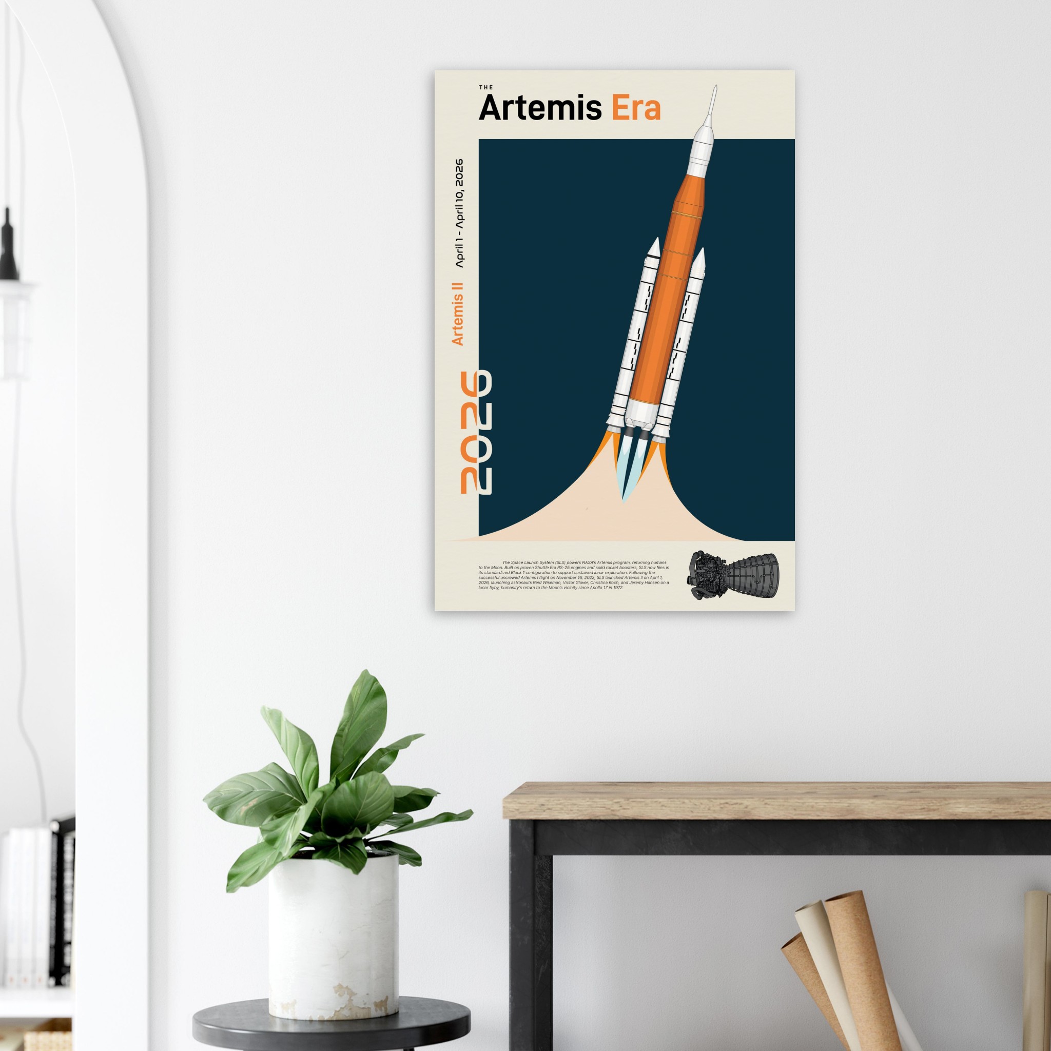 A futuristic/retro poster showcasing The Space Launch System, The Artemis Era printed on master’s edition archival paper, in off-white and uncoated, offers museum-quality for art enthusiasts seeking a luxurious way to enjoy world-class artworks: