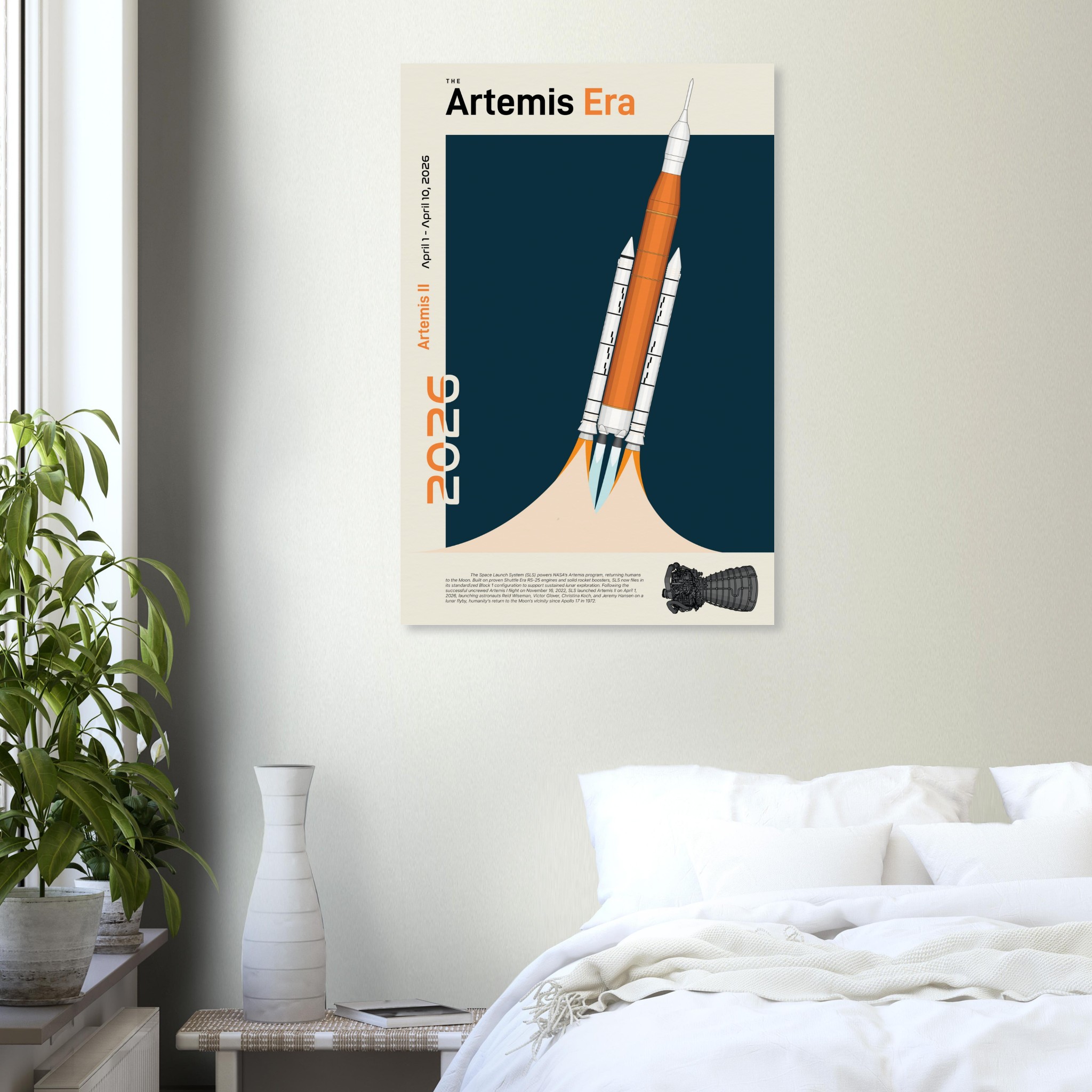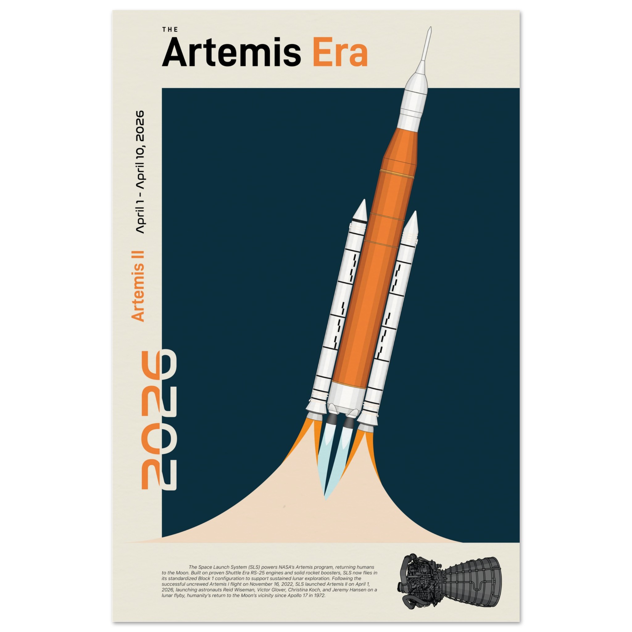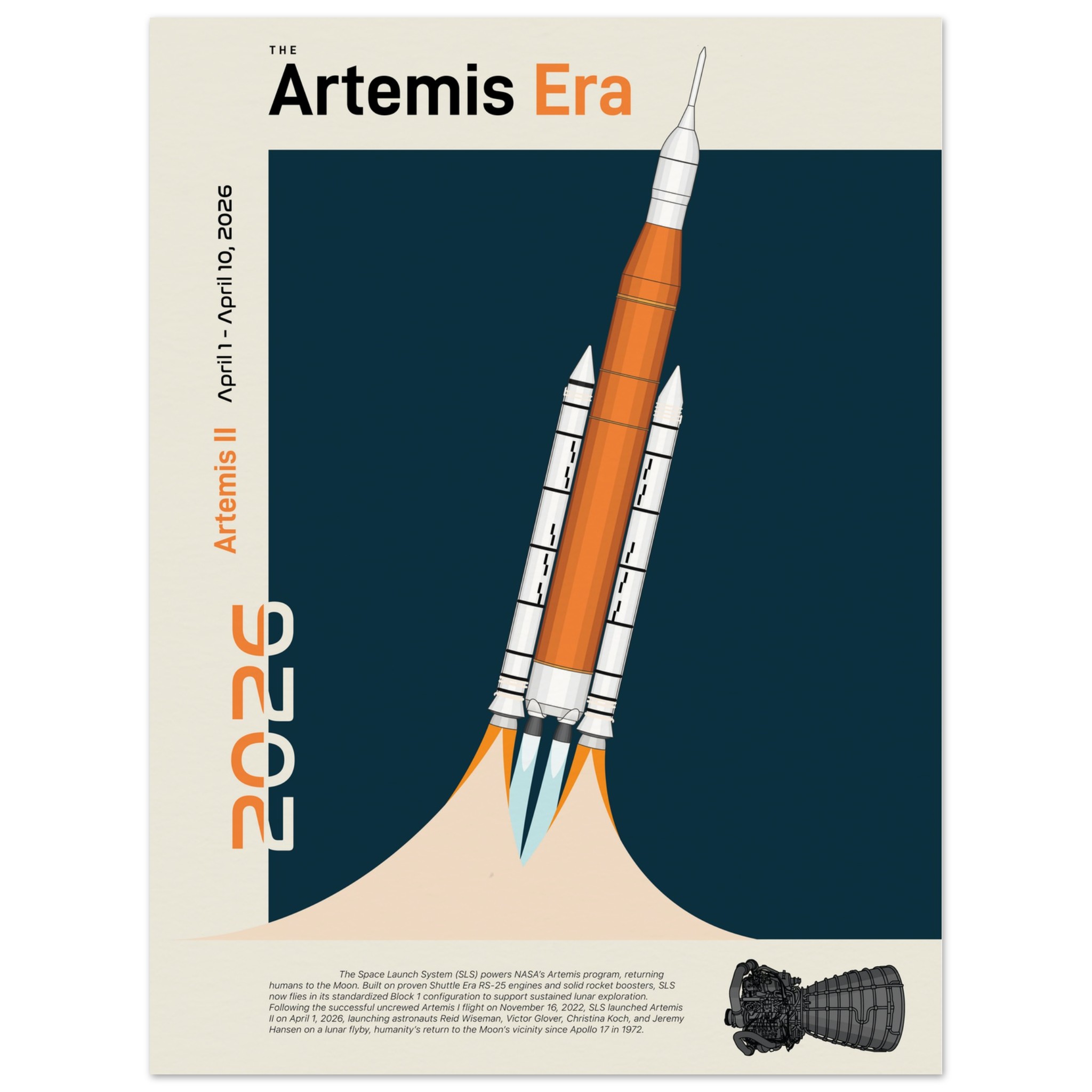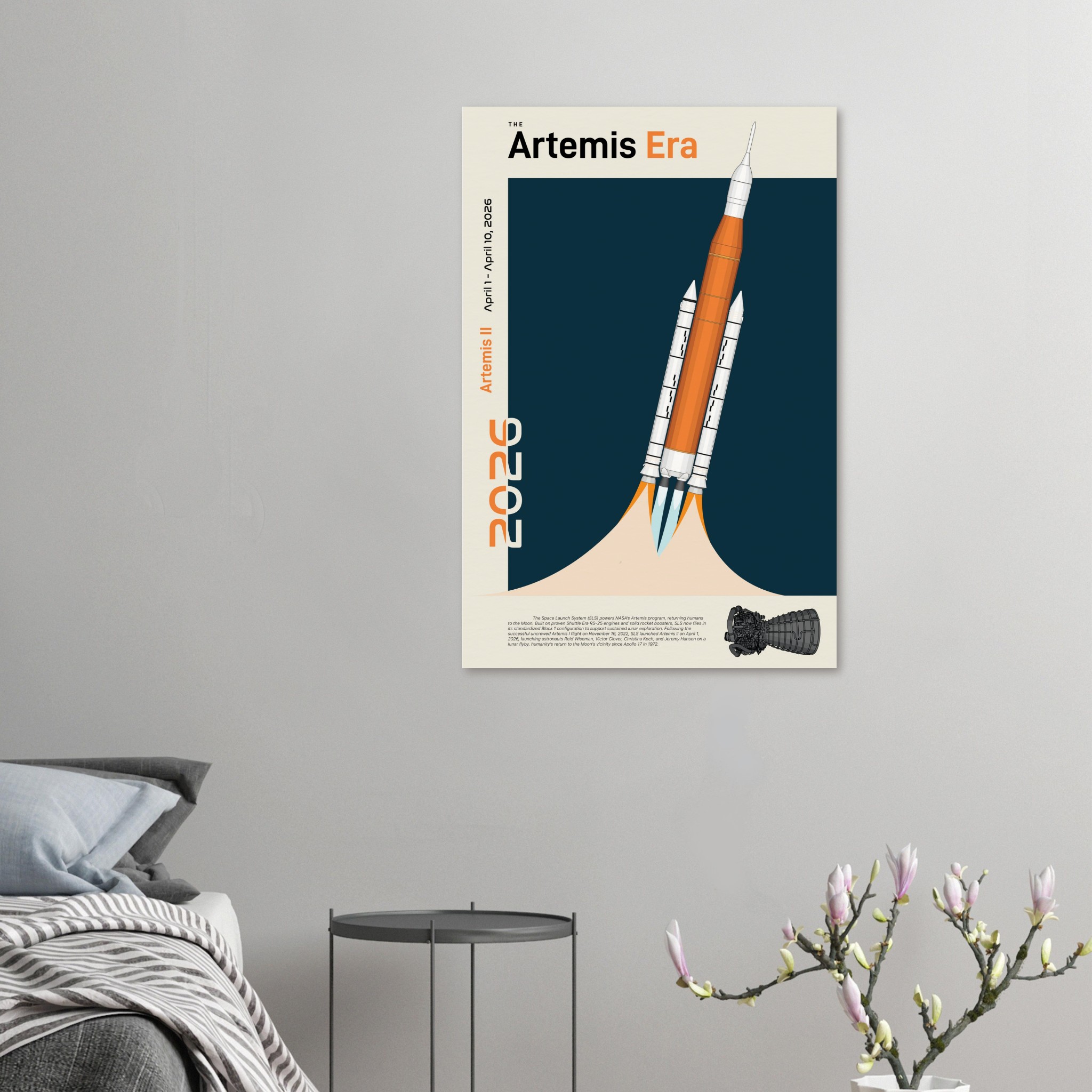 A futuristic/retro poster showcasing The Space Launch System, The Artemis Era printed on master’s edition archival paper, in off-white and uncoated, offers museum-quality for art enthusiasts seeking a luxurious way to enjoy world-class artworks: